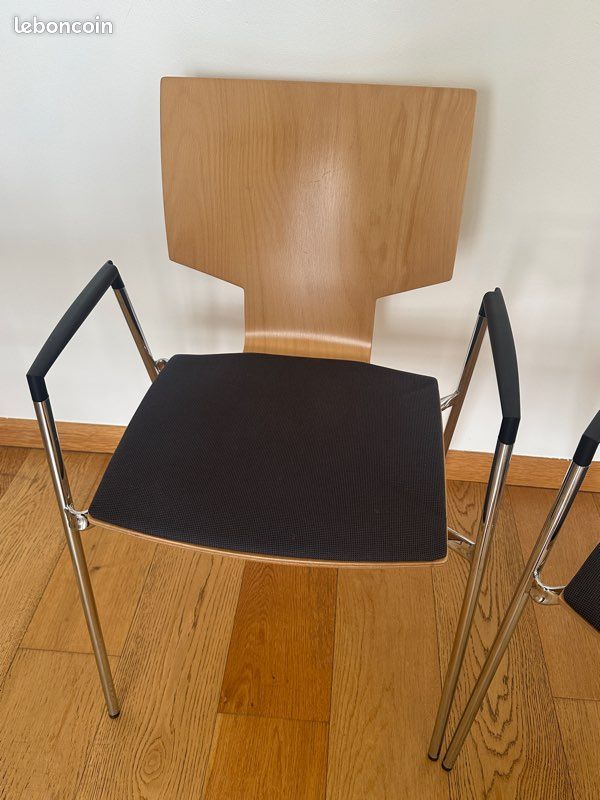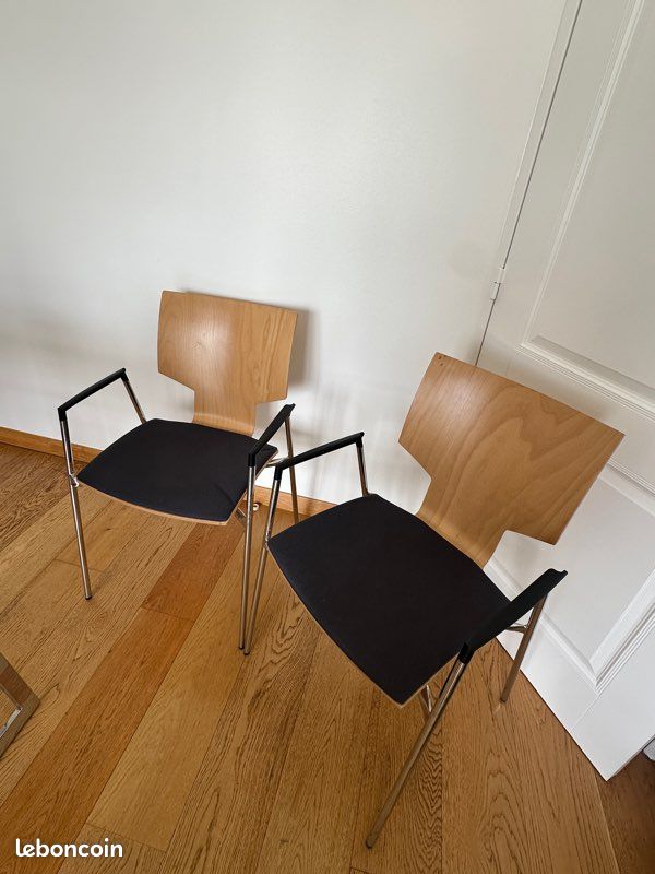 Description : Je vends ces 2 chaises de bureau Casala avec dossier en bois clair et assise bleu/gris.