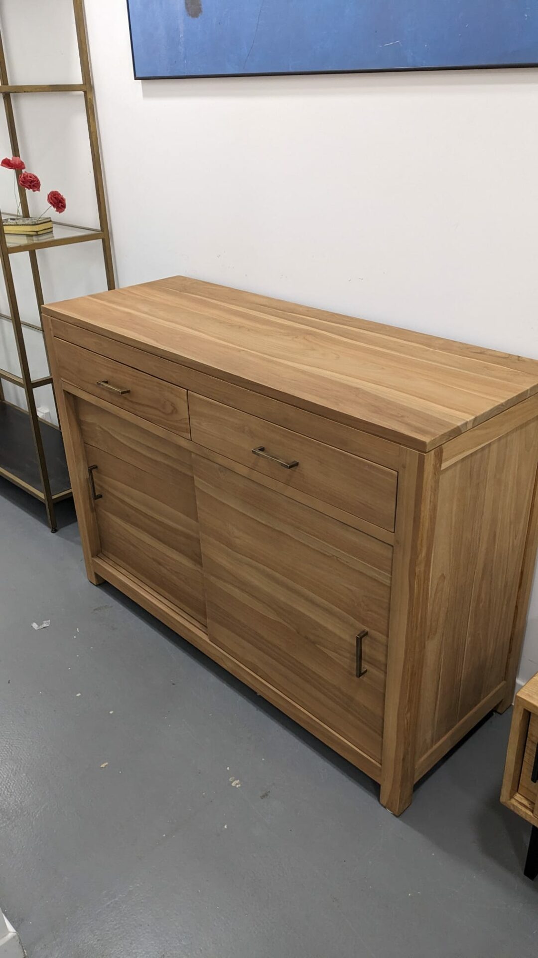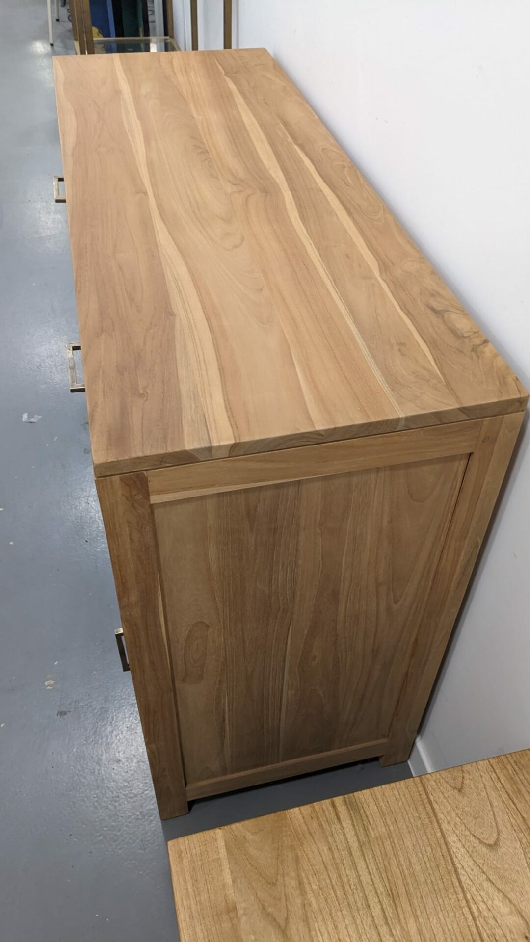 Description : Buffet en teck massif avec portes coulissantes pour un accès facilité. Bois brut, authentique, naturel et chaleureux.