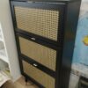 Meuble rangement chaussures trois placards double étagères a chaque niveau.