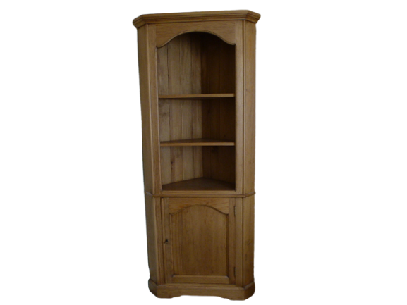 Buffet d’angle avec 2 étagères fixes et un placard bas.