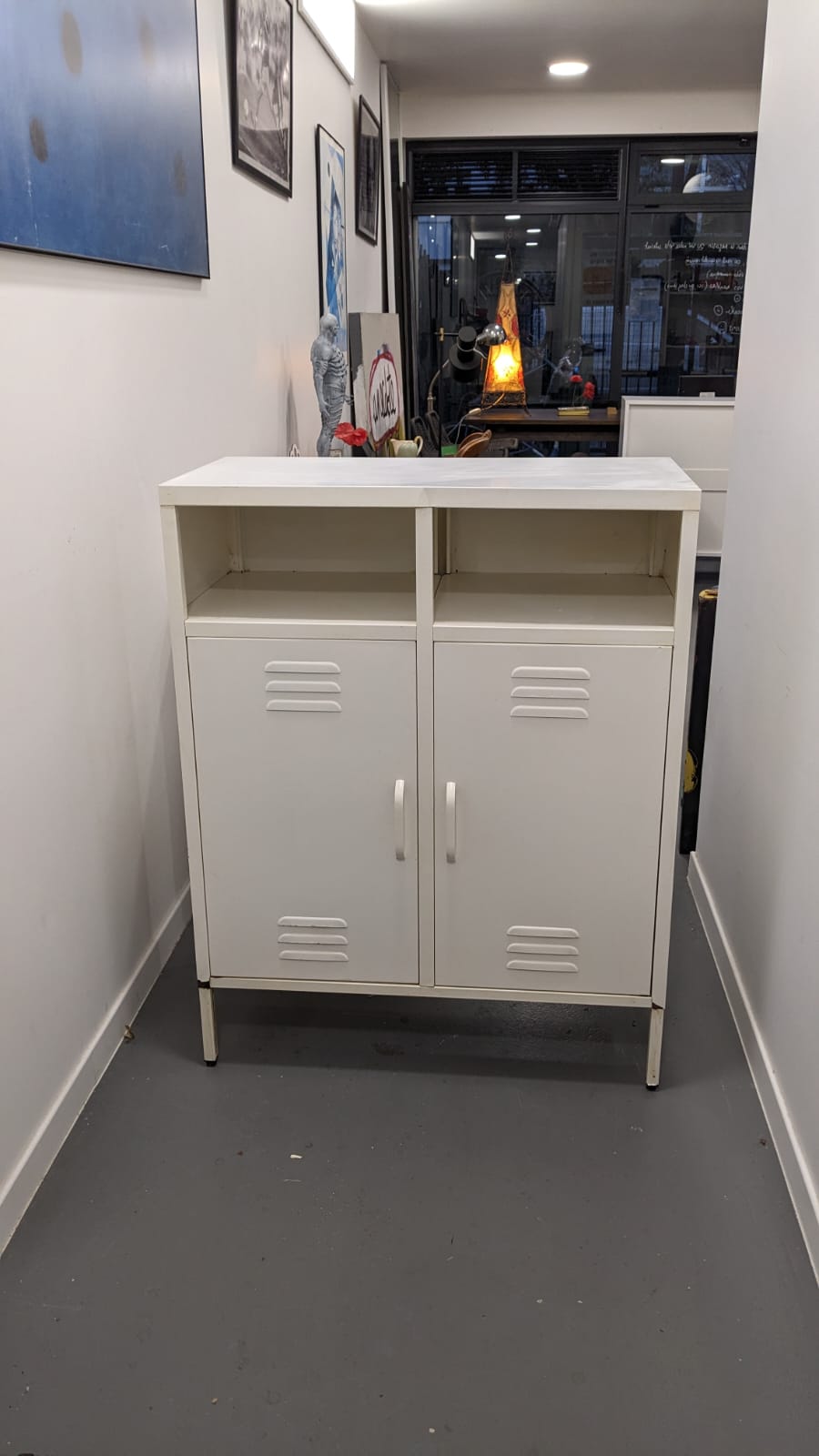 Description : Mueble bar avec 2 portes, 1 compartiment supérieur et 1 étagère réglable à l’intérieur. Disponible en 2 couleurs. Design polyvalent pour le rangement et la décoration.