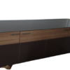 Description : Vends buffet salle à manger en bois marron 4 portes avec divers rangements et un grand tiroir central Dessus du buffet en verre fumé marron