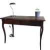 Bureau ancien / table en bois qui peut servir de bureau/ desserte ou console avec 2 tiroirs et une chaise (bois et assise en osier). A noter que l’assise de la haise est séparable du cadre.