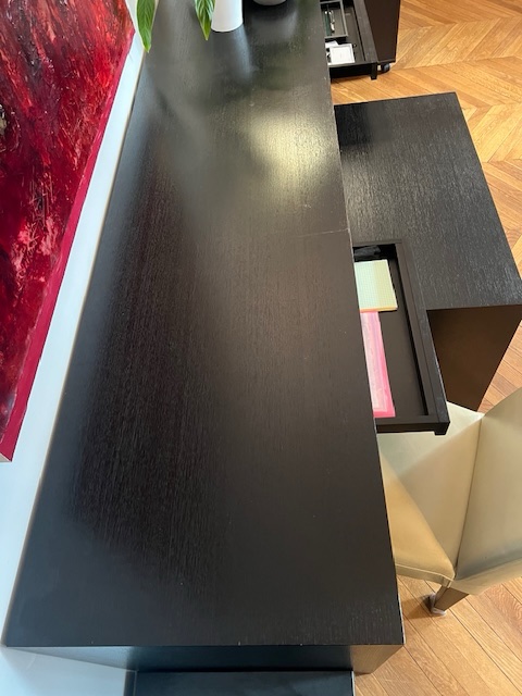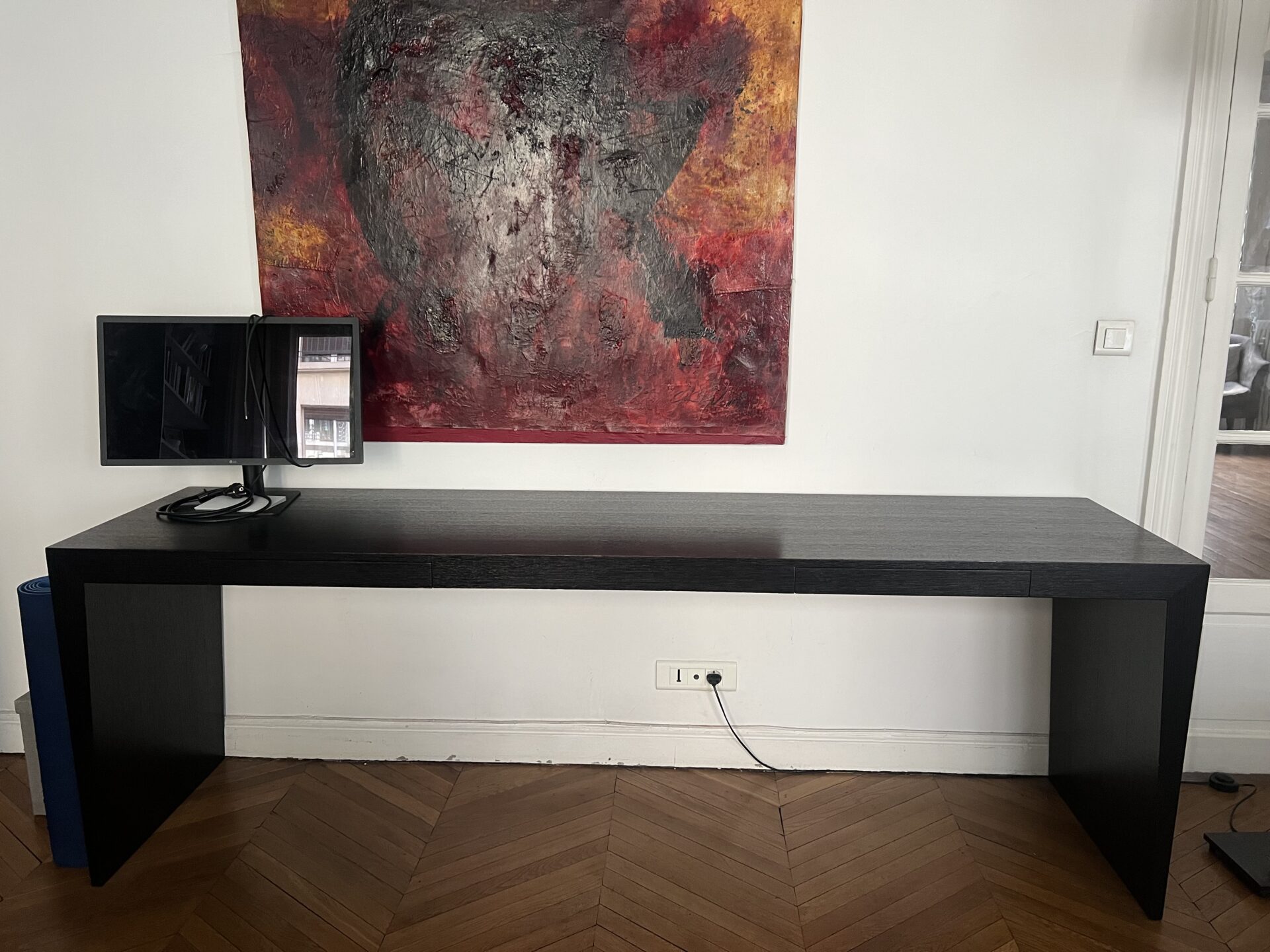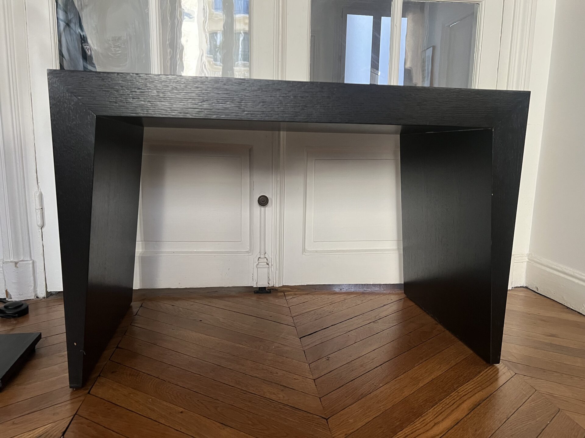Pièces sculpturales, lignes architecturales, en bois massif teinté foncé / noir.