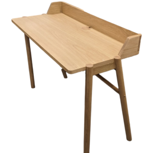 Bureau en verre avec des pieds tréteaux et deux plaques posées dessus. Style moderne et design.