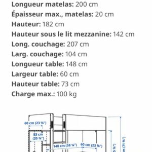 Dimensions : longueur 120 cm x largeur 55 cm x hauteur 76 cm
