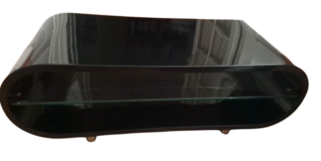 Bois laqué, tablette intermédiaire en verre.