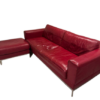 Description : canapé en cuir rouge, très robuste, avec quelques traces d’usure visibles sur les photos.
