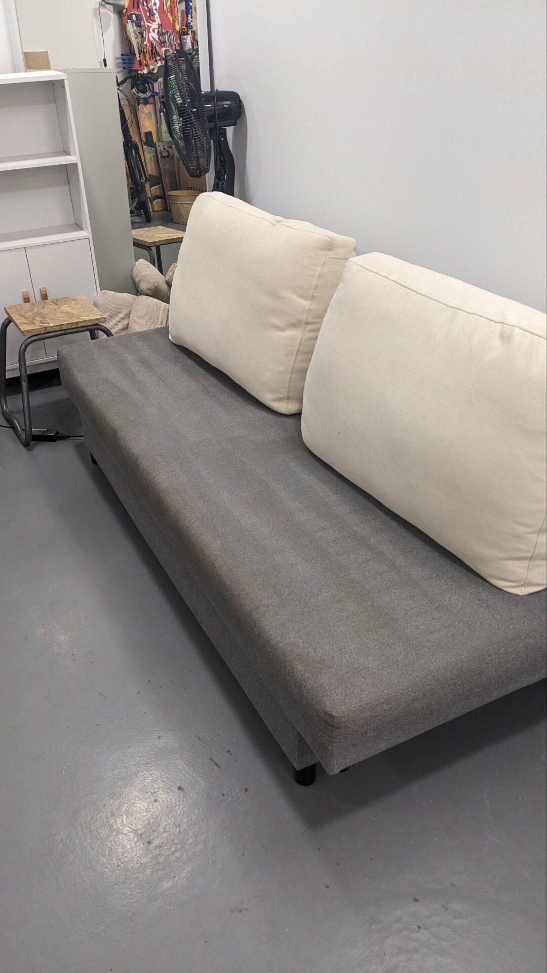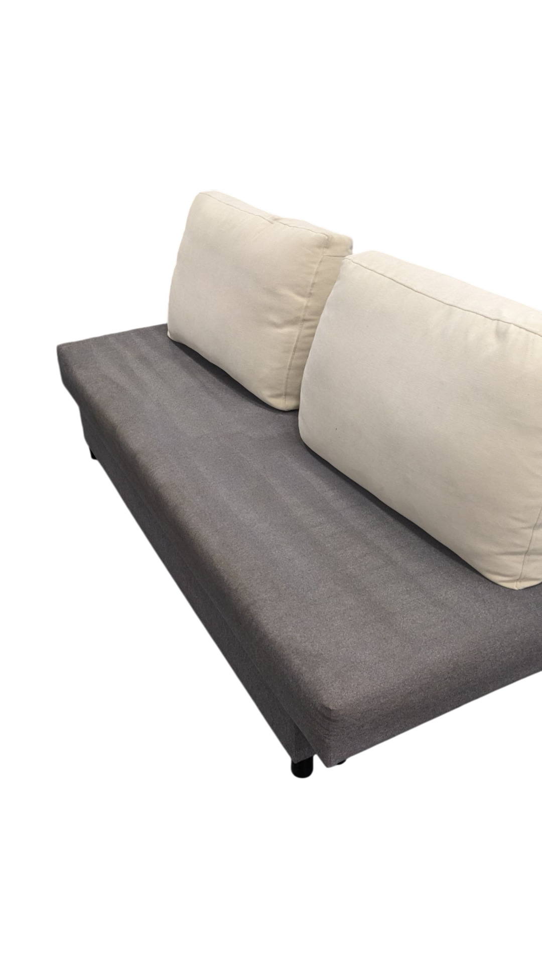 Description : un canapé-lit IKEA ÄLVDALEN, idéal pour un petit salon, un bureau ou une chambre d’amis. Le canapé est vendu avec 2 gros coussins et 2 petites assortis pour un confort optimal et un look cosy. Très facile à déplier, il offre une solution de couchage d’appoint efficace tout en prenant peu de place.