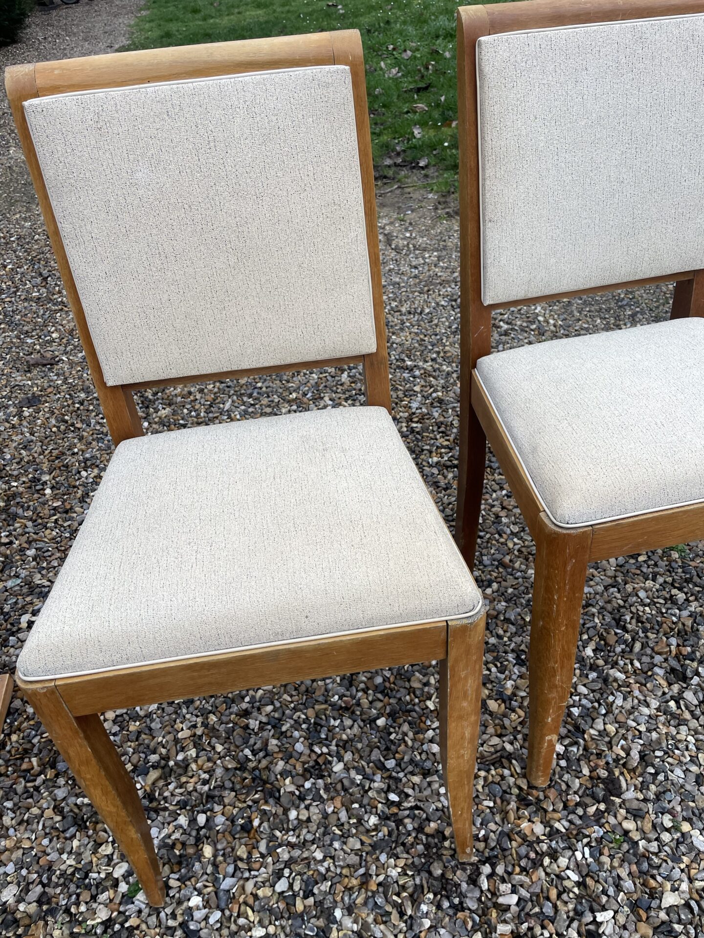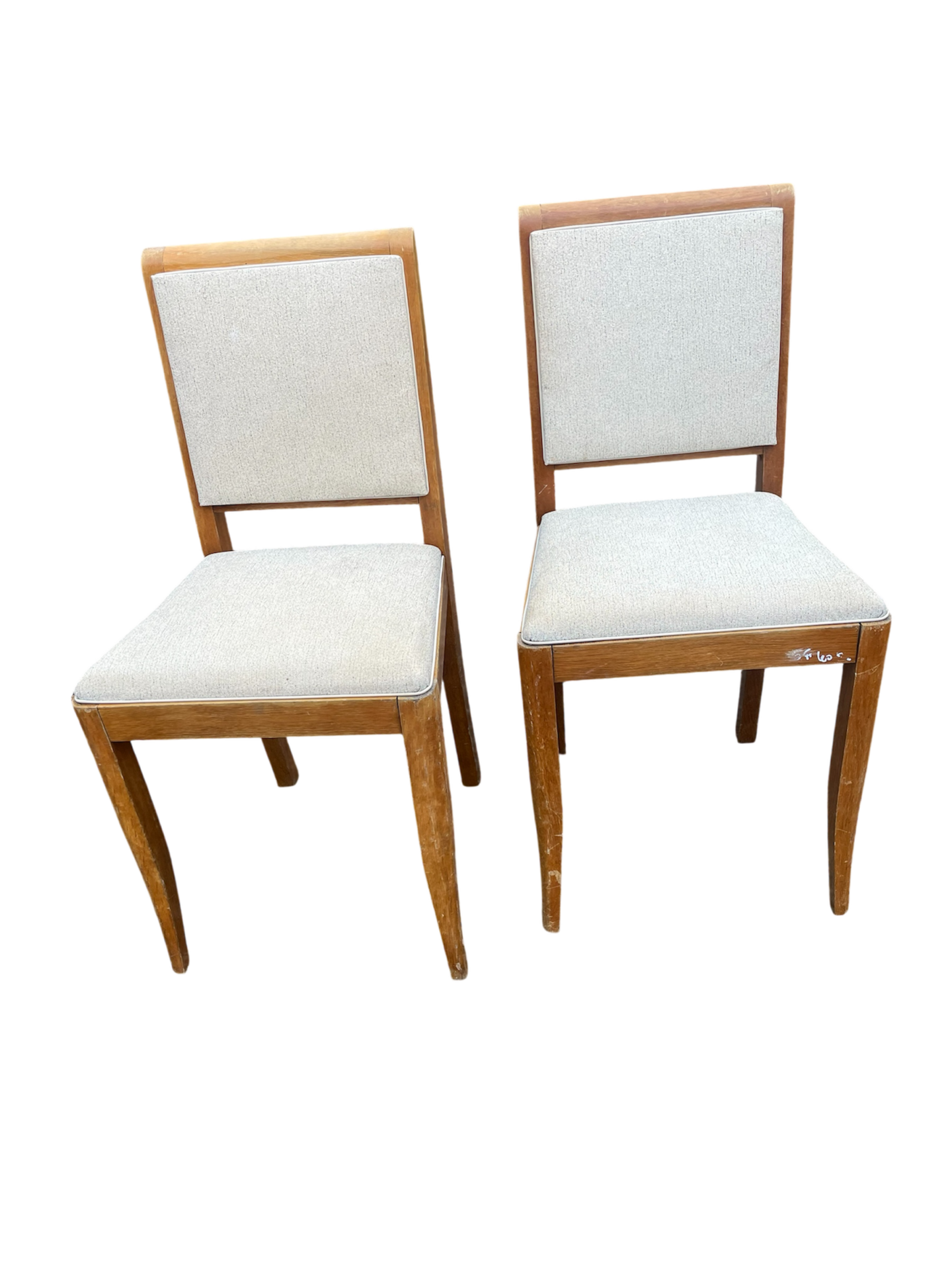 Paire de chaises vintage en bois blond et Skaï beige