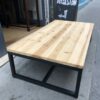 Table basse plateau en pin et structure en métal noir