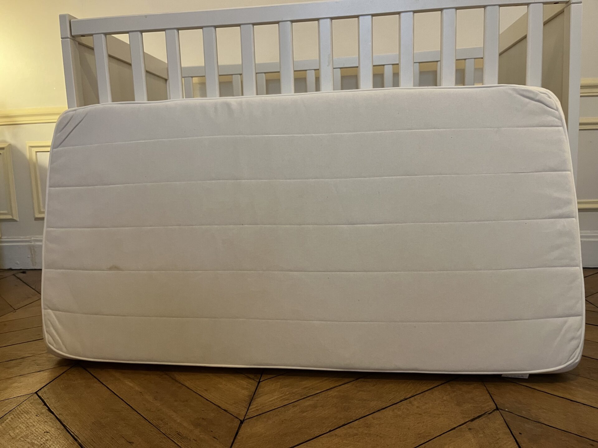 Matelas déhoussable IKEA avec une légère tache + drap housse. Lit actuellement démonté.