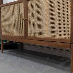 Description : console et étagères en bois et verre