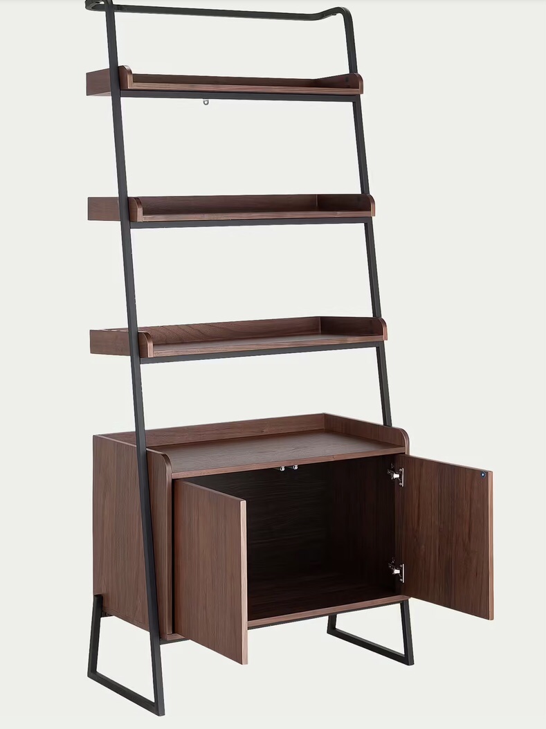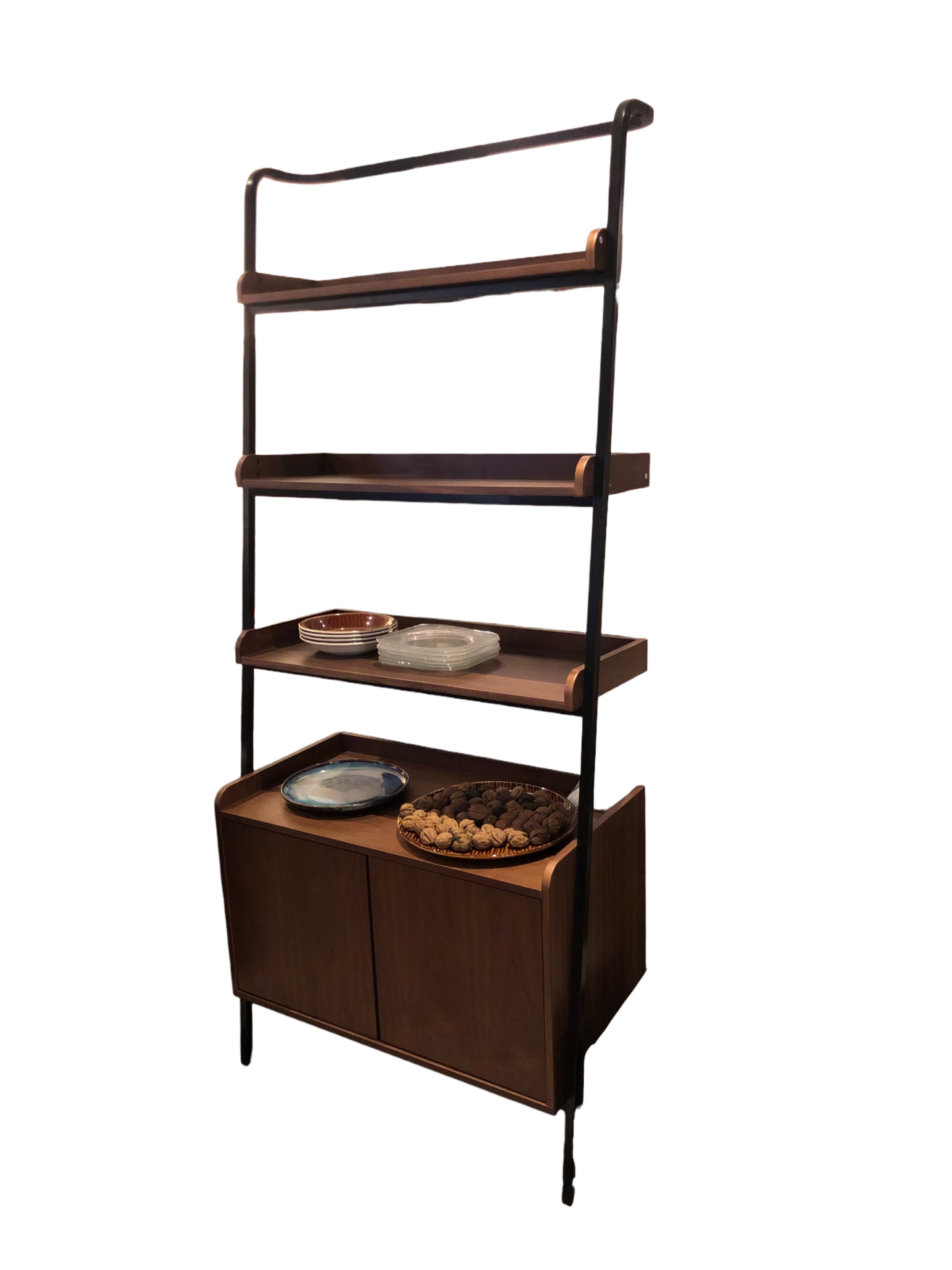 Étagère X ESTANIER métal noir et placage noyer et son caisson