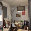 Description : lampadaire électrifié en acier et coton. Couleur noire. Interrupteur au pied. Longueur de la perche réglable.