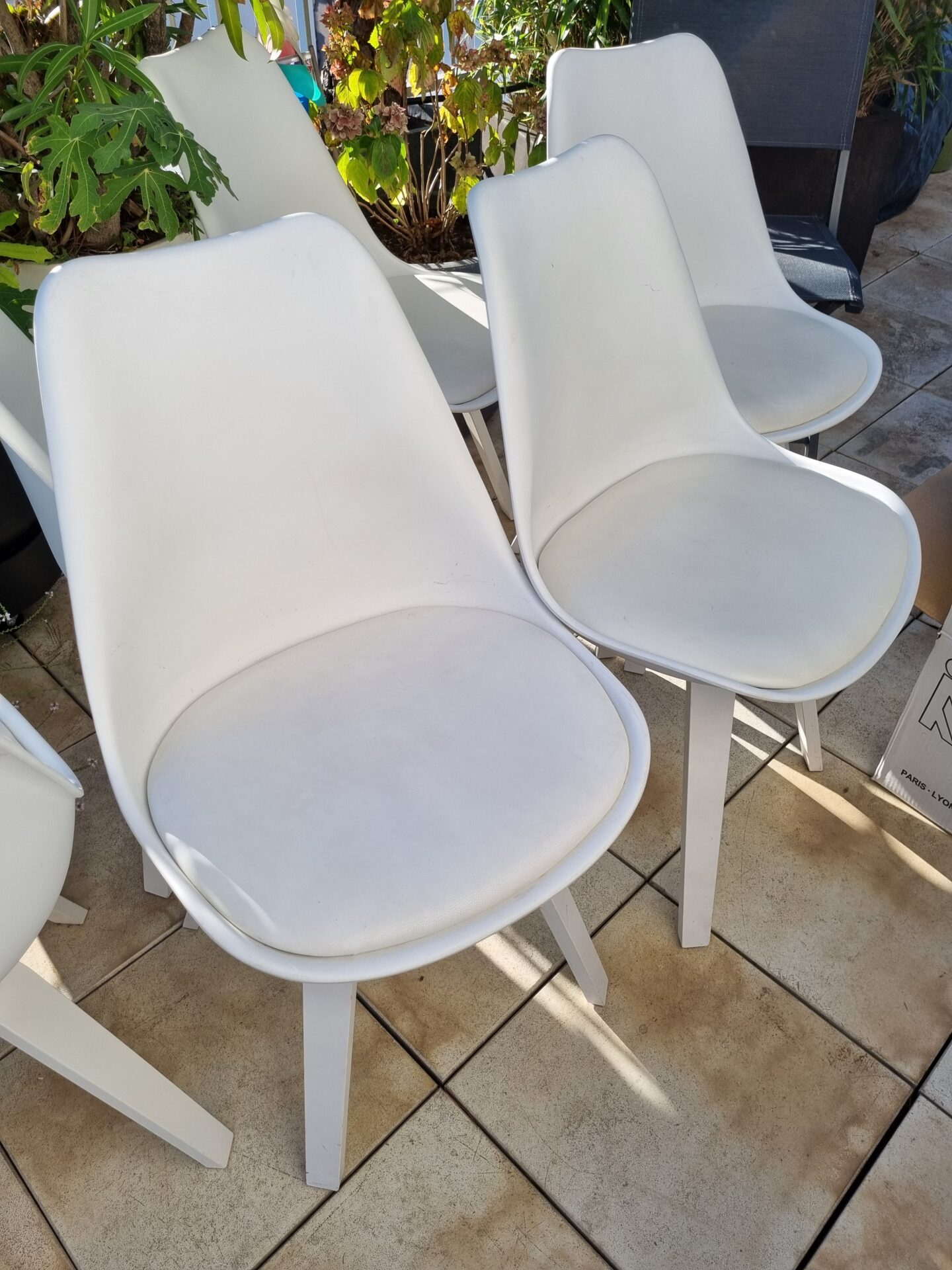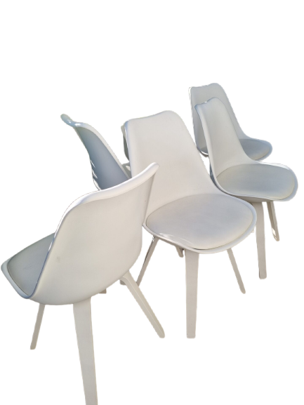Description : Chaises de salle à manger ou cuisine, coque en plastique, assise en simili cuir et pieds en bois peint. Marque Fly. Design moderne qui s’agencera parfaitement avec votre intérieur. Lot de 6 pièces , prix unitaire 40€