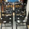 4 chaises en bois de hêtre couleur vernis noir pliantes style rétro. Les assises sont manquantes, une galette à nouer au dossier leur apportera un confort supplémentaire.Empilables.