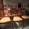 6 très jolies chaises anciennes en bois de merisier assises tissu.