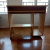 Meuble informatique couleur chêne clair. Tablette supérieure coulissante sur glissières métalliques.