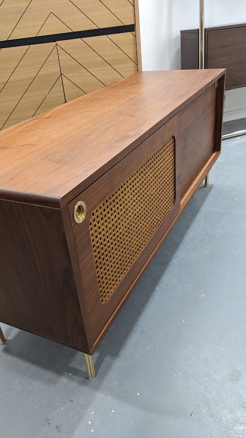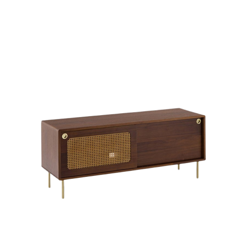 Description : Le charme du design 50’s remis au goût du jour. Porte en cannage, pieds en laiton, le meuble TV Redpop joue les contrastes et mettra en valeur votre intérieur. Une création La Redoute Intérieurs.