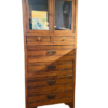 Description : Meuble en bois avec vitrine à double battants, 2 petits tiroirs, 4 grands tiroirs.