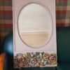 Miroir ovale verre biseauté avec frise en bois, pièce unique car fabriquée personnelle