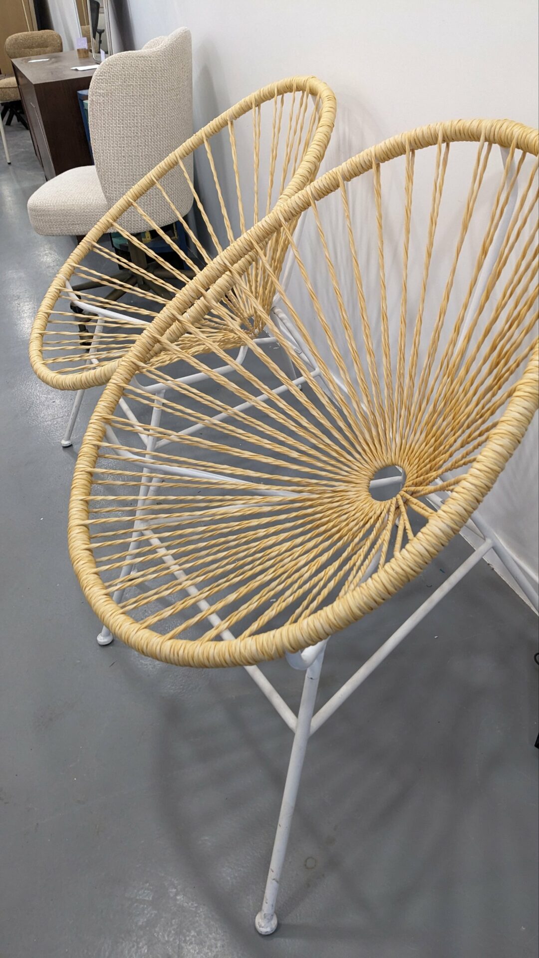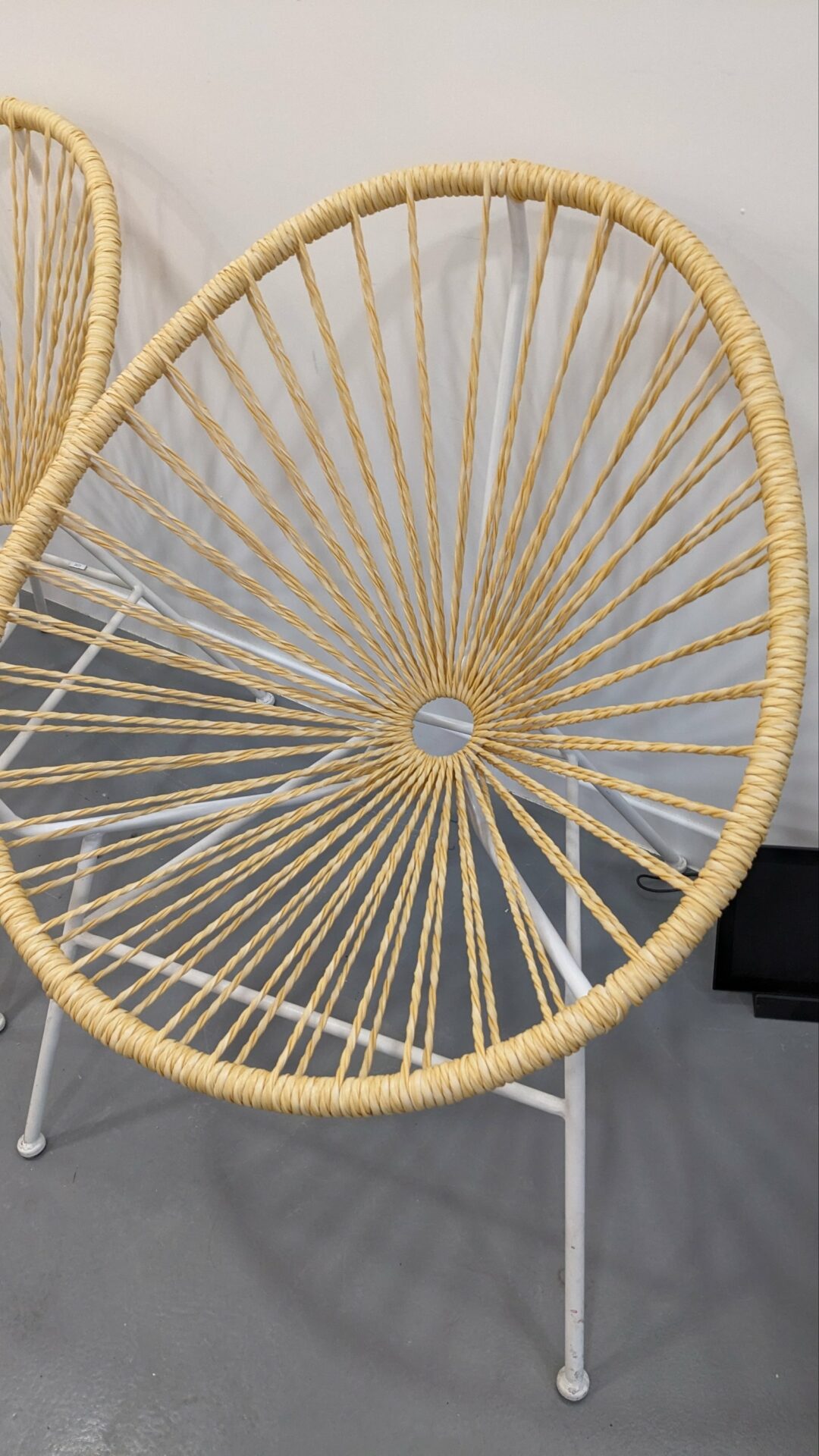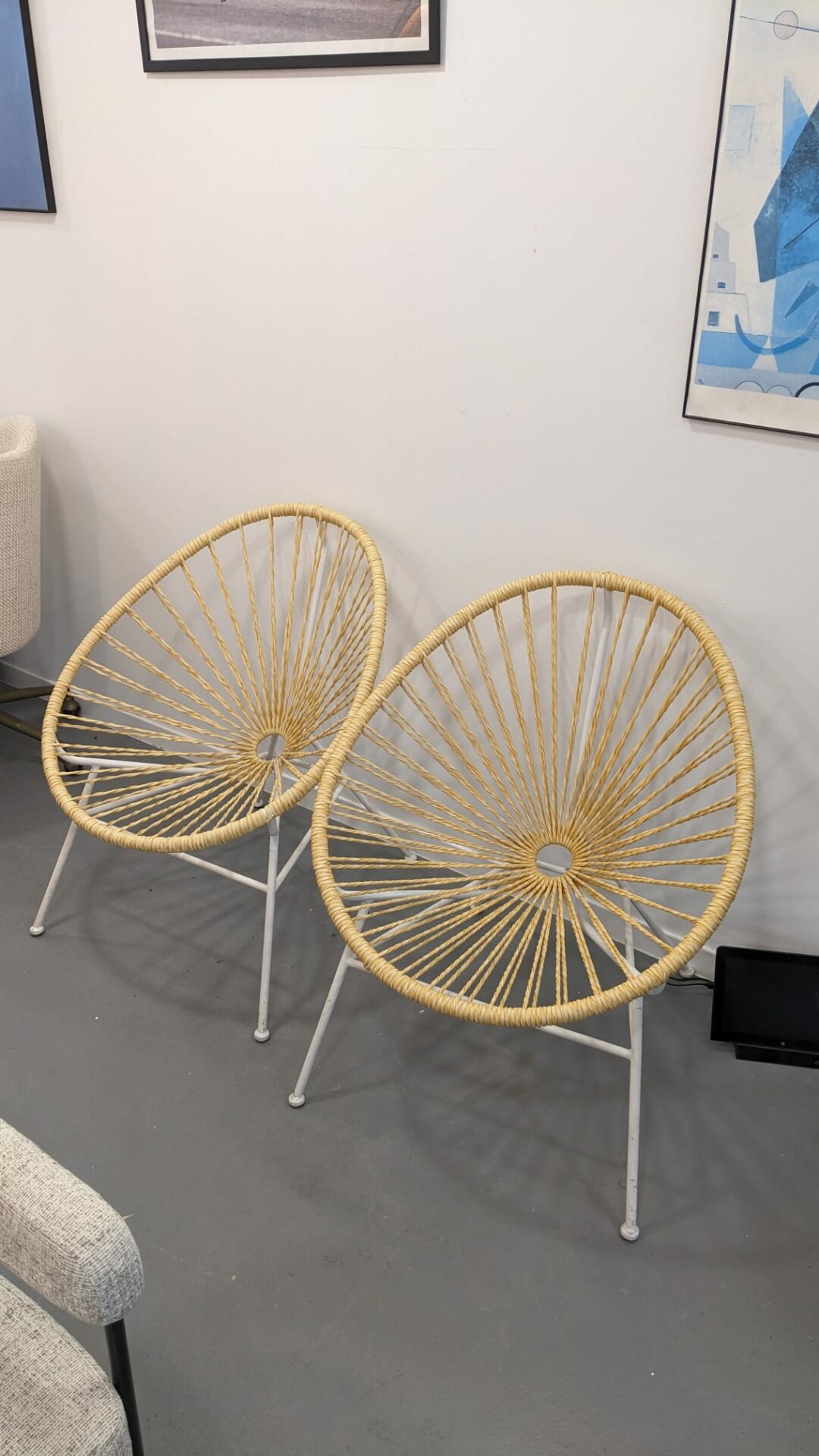 Description : 2 fauteuils style « acapulco » en excellent état, assise souple et confortable en fil torsadé, structure en acier solide.