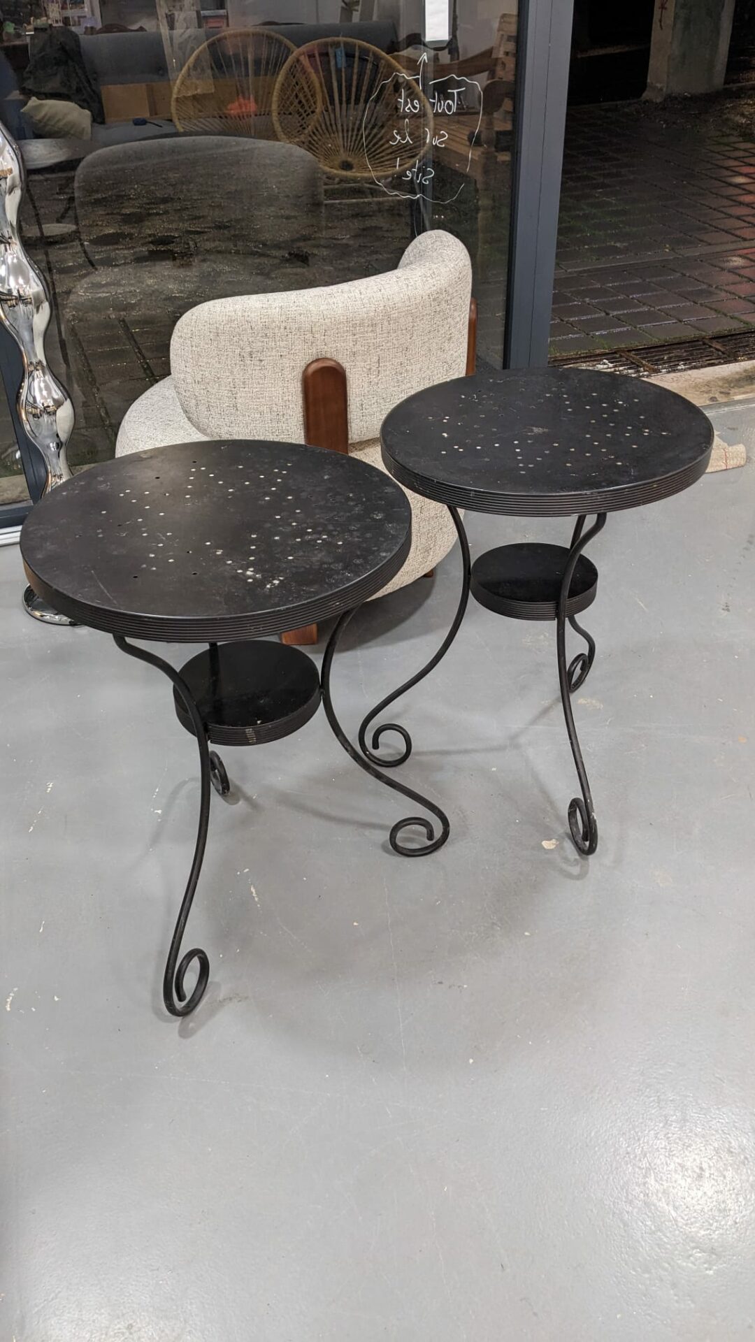 Description : Deux guéridons en métal Ikea vintage des années 90 avec plateau et châssis en métal (vendus ensemble )