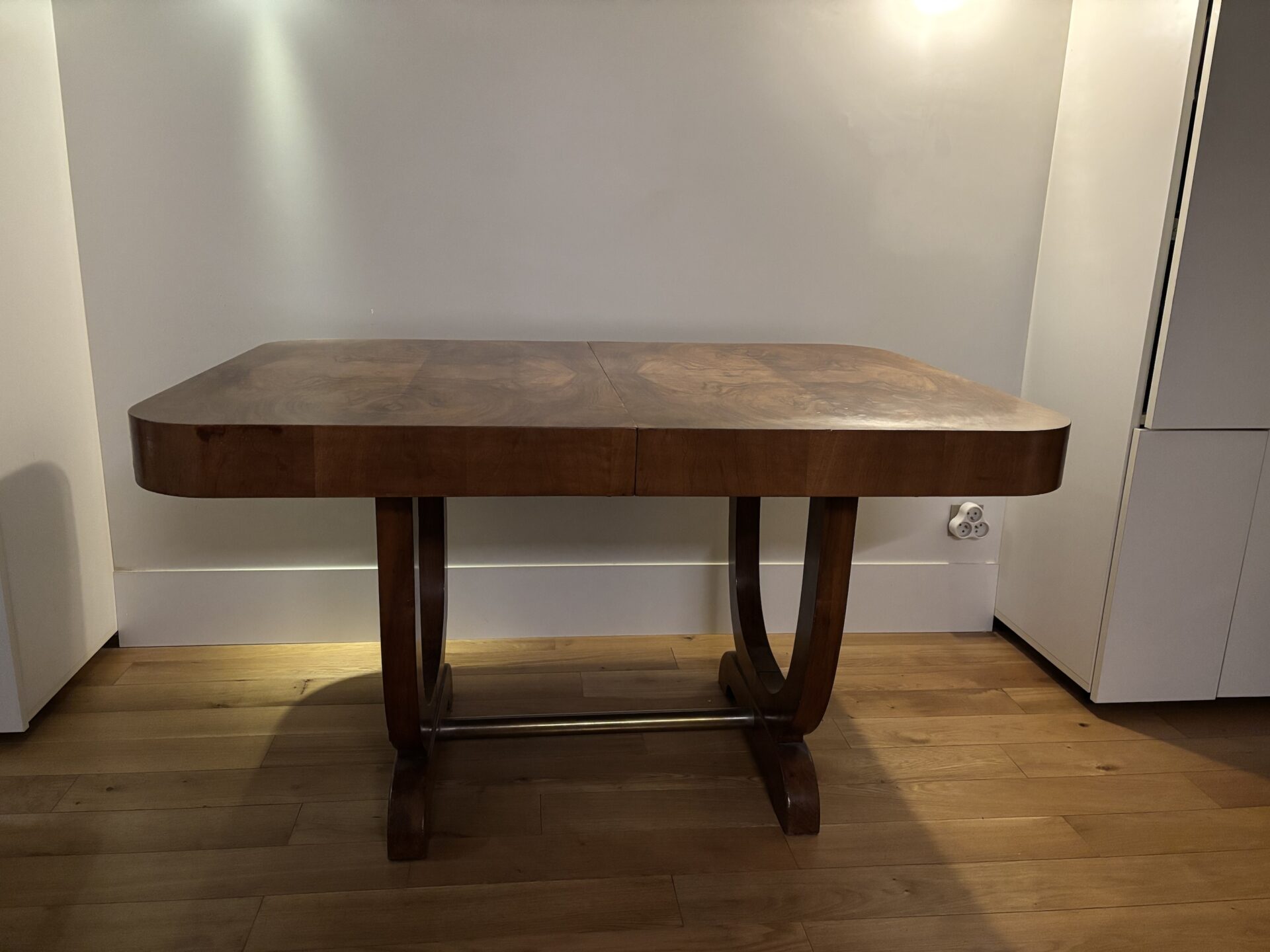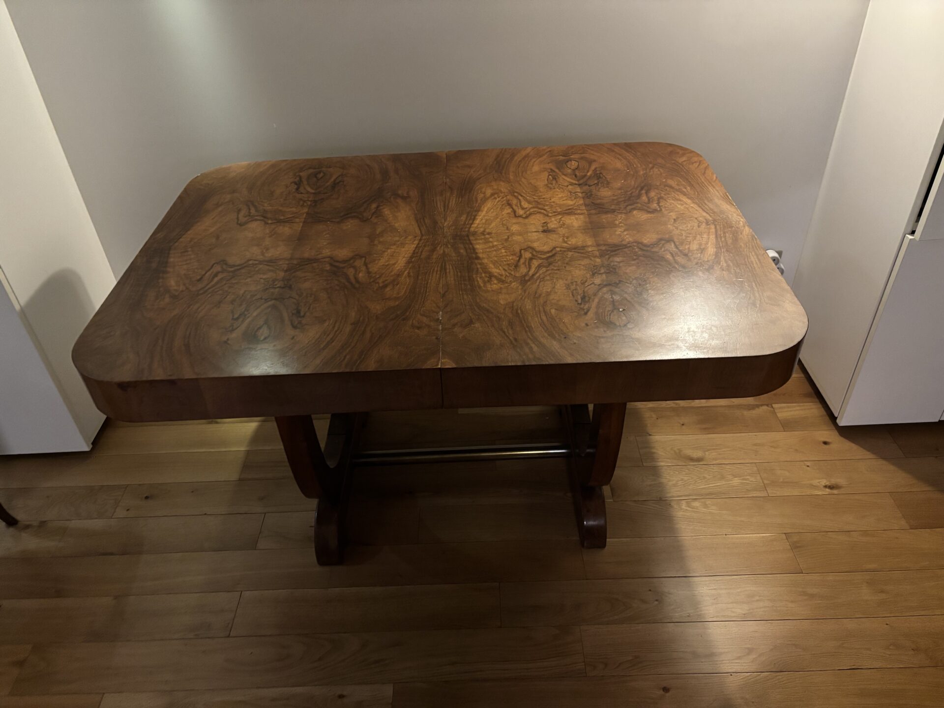Table à manger extensible (6-12 personnes) placage noyer années 30