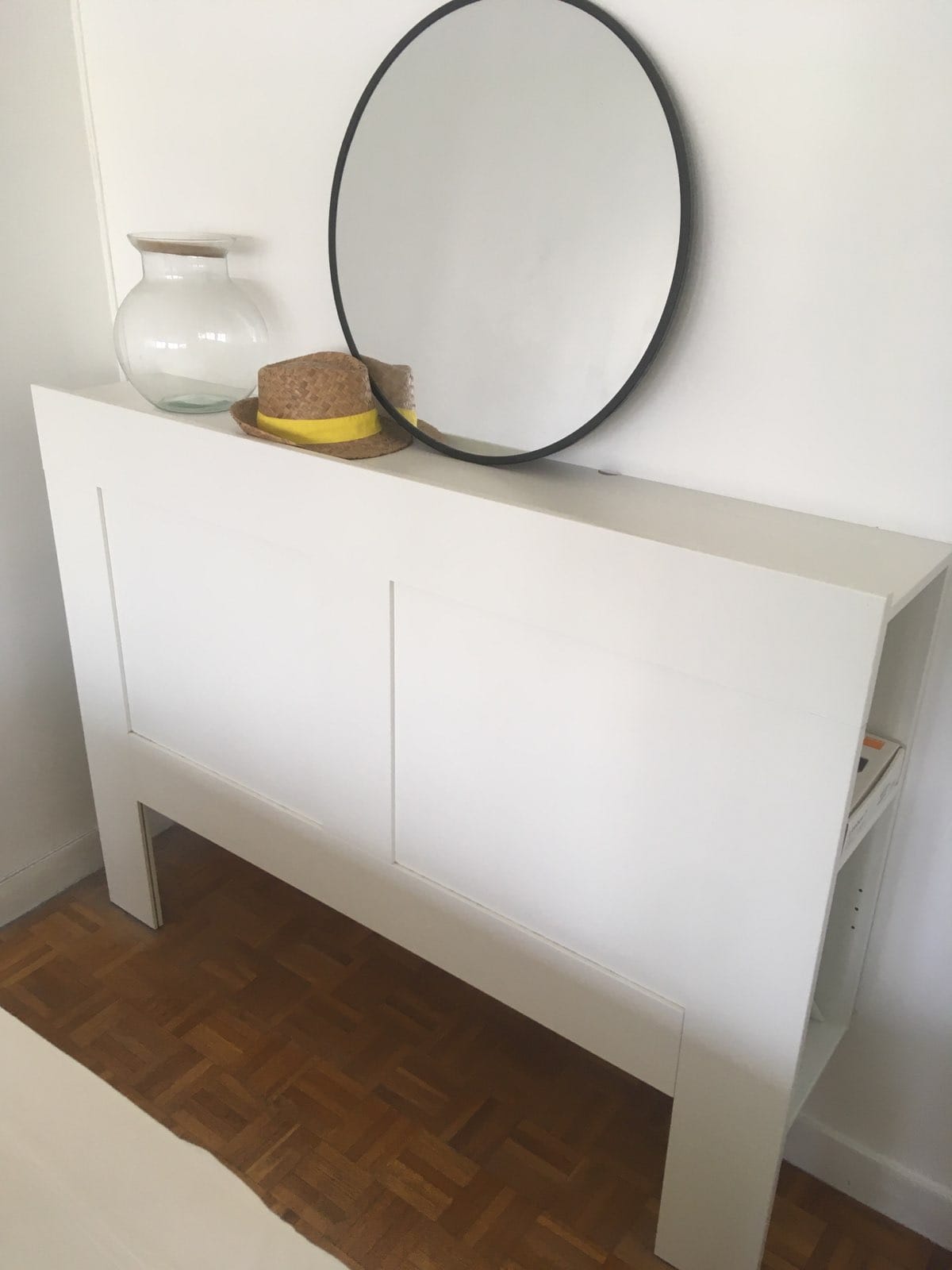 Description : Tête de lit avec rangements intégrés, idéale pour optimiser l’espace et cacher les câbles.